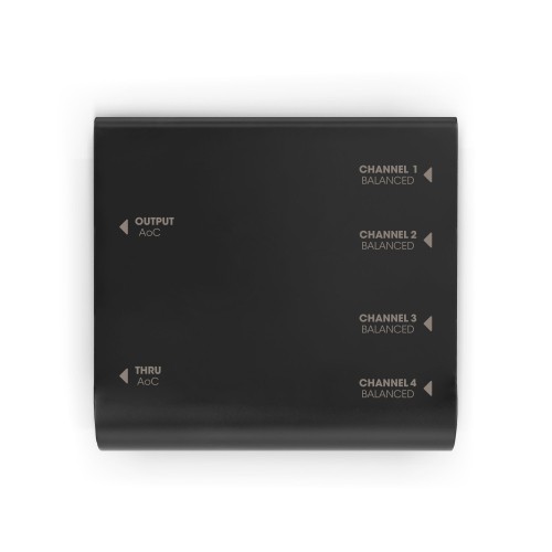 The AOC B XLR F is a multicore box that facilitates the stable transmission of 4 separate analogue and balanced audio signals or 8 digital AES3 signals through a network cable (not included). To mitigate the risk of ground loops, the etherCON connection features a ground lift switch. In addition, a secondary etherCON THRU connection – linked in parallel – facilitates the transmission of signals to external devices. Both of the etherCON connections are safeguarded against unlocking to prevent accidental cable disconnection.