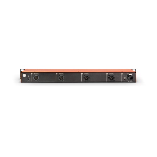 The BRIDGE 4A from Palmer is a 4-channel, active DI box in 19" rack format for feeding the unbalanced and high-impedance signals of electric instruments such as guitar, bass, keyboard or synthesiser into the microphone inputs of a mixing console. It provides a transformer-balanced, low-impedance signal at the outputs and eliminates mains hum and interference caused by ground loops. This keeps the sound unadulterated: brilliant, low-noise and without interference.