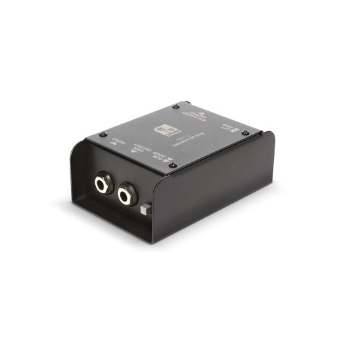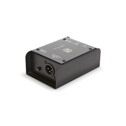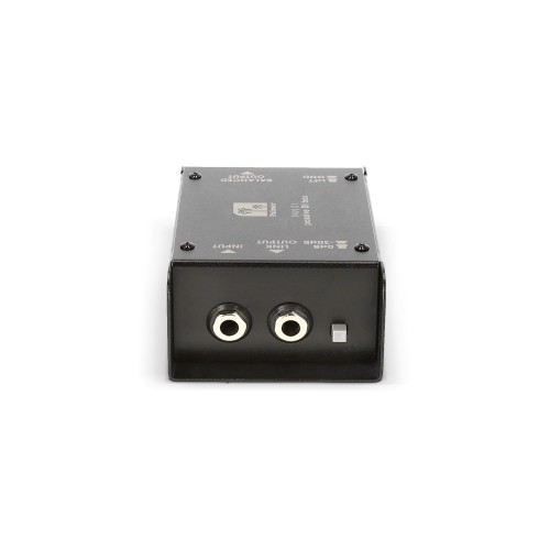 Passive DI box. Jack input with paralell "THRU" output, transformer balanced XLR output. Attenuable input sensitivity, can handle both line level and speaker level signals.