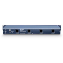 Active 4-channel DI box. Each channel has a jack input with a parallel output for passing through the signal. An attenuation switch (-30 dB) allows either a line or loudspeaker signal to be connected.Active 4 x DI box, 19" format. Technical specitications identicl to the PAN-02, however, the PAN-03 is built for mains operation. All connections and switches are located on the front panel, an additional parallel XLR output is located in back. 19 inch rack-mount format, 1 rack space, 90 mm front to back.