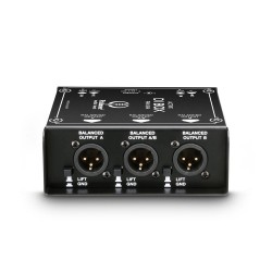 The Palmer PAN04A is 2-channel DI box for feeding asymmetrical and high impedance electric instrument signals into a mixing desk’s microphone inputs. It delivers a transformer balanced, low impedance signal to the outputs and eliminates mains hum and interference caused by ground loops. The active switch leaves the frequency response unaffected and achieves a high dynamic range. In addition to 6.35 mm direct outputs and -30 dB switchable input attenuation, the DI box also features a mono output that sums both channels. The PAN04A is designed to be exceptionally robust and is suitable for both stage and studio. It can be powered with 9 to 24 V DC mains adapters or phantom power when two outputs are connected to a mixer.