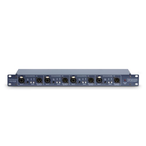 The PAN08 is a multifunctional device. Each of the four channels can be used independently as an active DI box, line isolation box or booster. The combination socket input accepts unbalanced and balanced signals. The output has dual transformer balanced XLR jacks (front and rear).