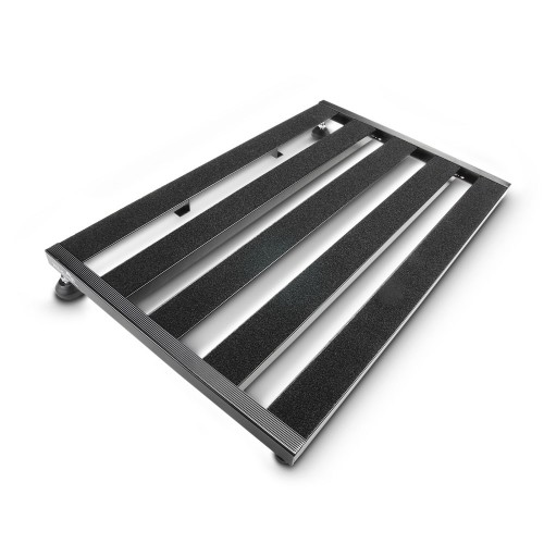 Universal aluminium Pedalboard for the storage of all commercially available floor effects. The cross bars as well as the height and the tilt of the Pedalboard can be individually adjusted. The cross bars are already covered with Velcro (fleece), a sufficient amount of hook strap is also included. Power supplies and similar peripheral devices can be mounted below the board. For this the Pedalboard features 4 practical hooks on the underside. 2 Elastic bands are supplied - making fixation easy!