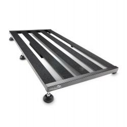 Universal aluminium Pedalboard for the storage of all commercially available floor effects. The cross bars as well as the height and the tilt of the Pedalboard can be individually adjusted. The cross bars are already covered with Velcro (fleece), a sufficient amount of hook strap is also included. Power supplies and similar peripheral devices can be mounted below the board. For this the Pedalboard features 4 practical hooks on the underside. 2 Elastic bands are supplied - making fixation easy!