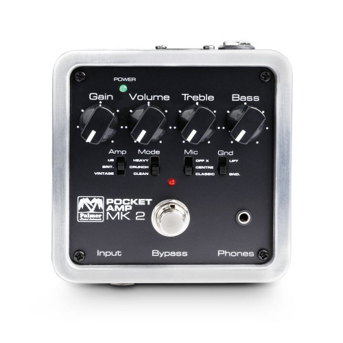 In its new incarnation, the Palmer Pocket Amp MK 2 delivers an extended range of authentic tube amplifier tones from high headroom ultra clean to maxed out high gain distortion. With 3-position selector switches for amplifier design, gain structure and loudspeaker miking simulation the MK 2's hot rodded circuitry lets you easily configure vintage and modern sounds as well as your own while high performance op amps provide superior S/N ratio. For even more flexibility the Pocket Amp MK 2 sports master controls for drive and output level plus a 2-band EQ that has been carefully tailored for guitar applications.
