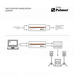 If you connect a laptop to a sound system, in many cases the sound quality leaves a lot to be desired. It hums and crackles, sometimes there is also a loss of sound in the low and high frequencies. The Palmer naab, a two-channel media DI box, provides a reliable solution for this situation.