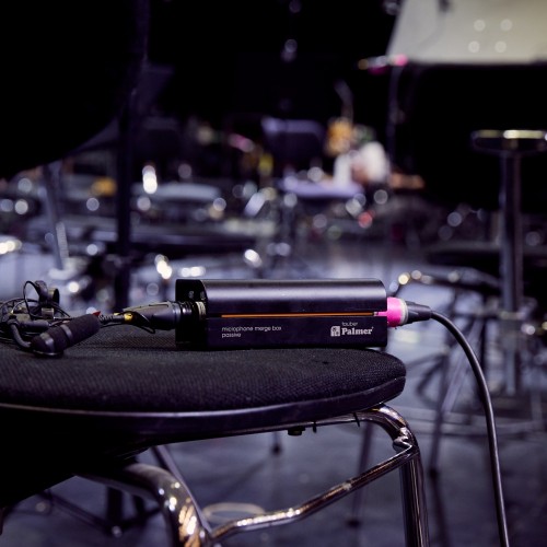 This problem has existed for as long as there have been PA systems! The Palmer tauber Microphone Merge Box solves the problem in a simple way. It has two balanced microphone inputs that are summed via a resistor matrix to a balanced mono signal which is routed to a single XLR output. It's as easy as it sounds!