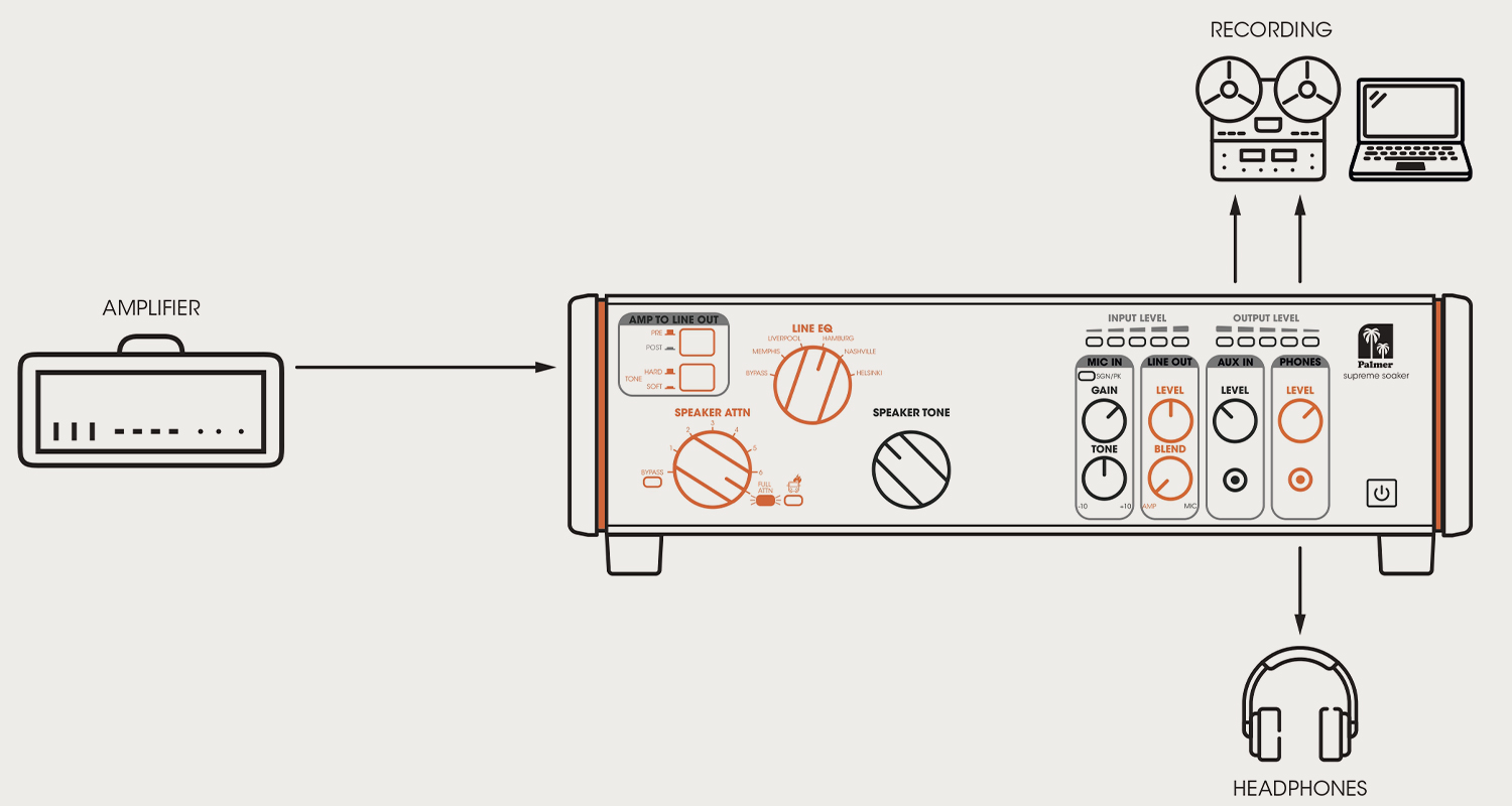 Finally, for us - the Palmer team - this is the culmination of a long-term goal, the realisation of a decades-long dream in sound. We've been the industry leader in analogue tonal solutions for musicians and sound engineers for over 40 years. Now, building on the legacy of the award-winning PDI-09 and PDI-03 speaker simulators and the PDI-06 Attenuator and Load Box, our designers and engineers have applied their decades of experience to the development of the Supreme Soaker.